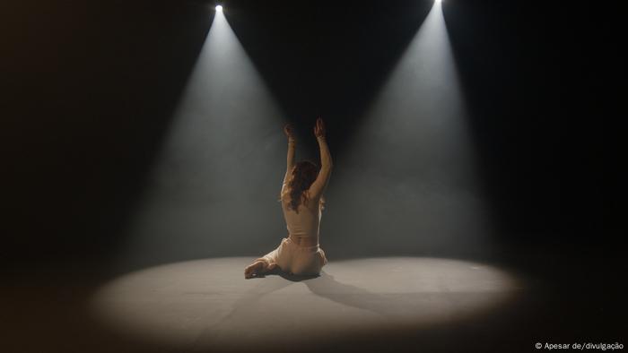 Uma das cenas de “Apesar de”, mostra a contorcionista gravando um vídeo para as redes sociais no qual ela questiona: “A cada hora, duas crianças com menos de 13 anos são abusadas sexualmente no Brasil. O que que a gente vai fazer com isso?”